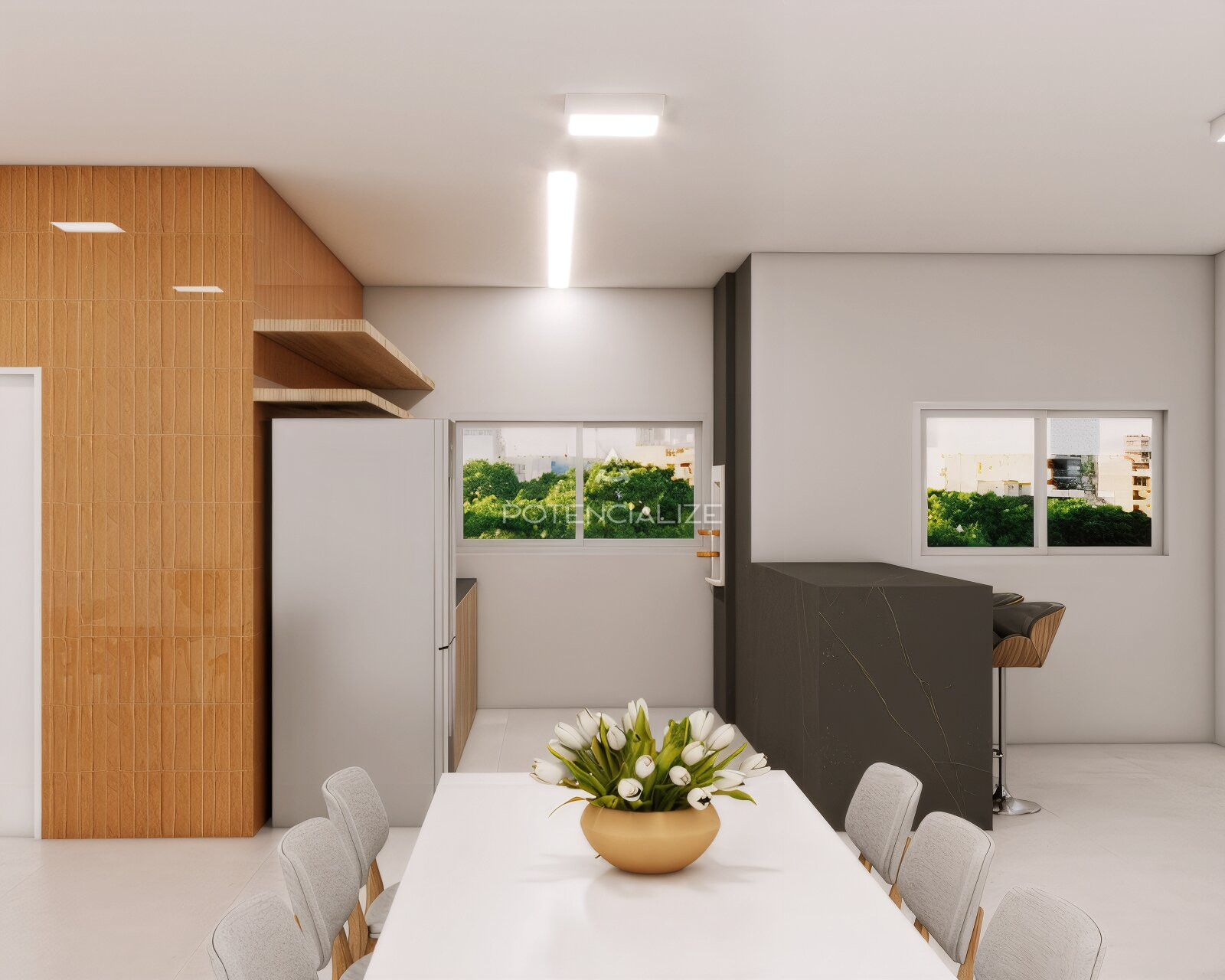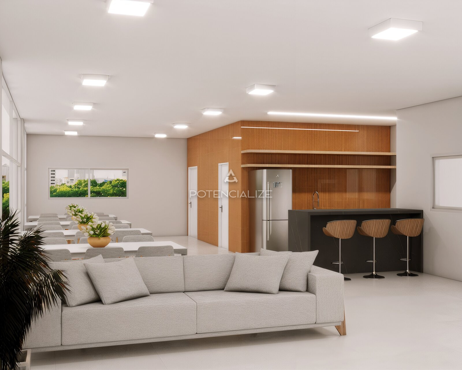 Áreas comuns com salão de festas, bicicletário e espaço de convivência